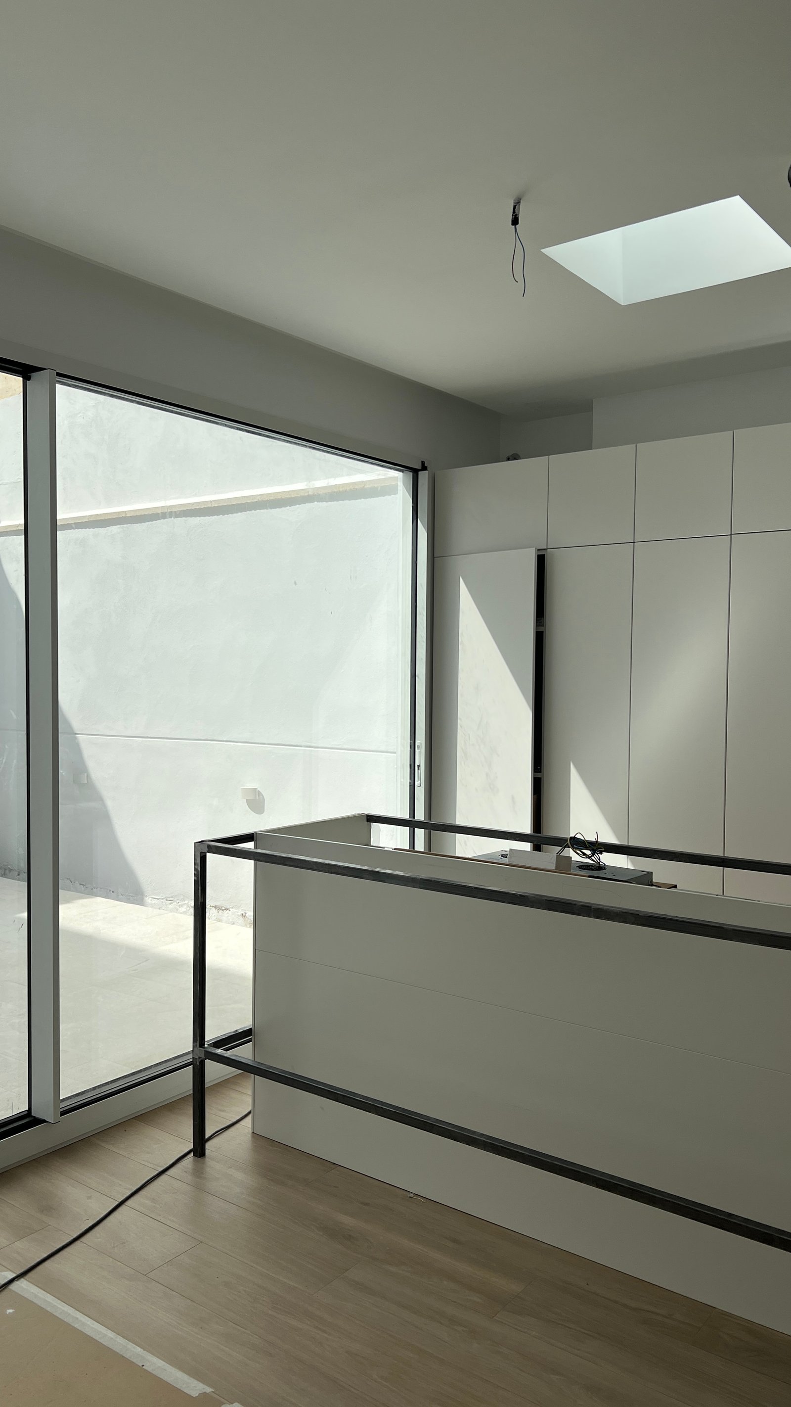 Esta iluminación se complementa con dos lucernarios estratégicamente situados: uno sobre la isla de cocina y otro sobre el salón.